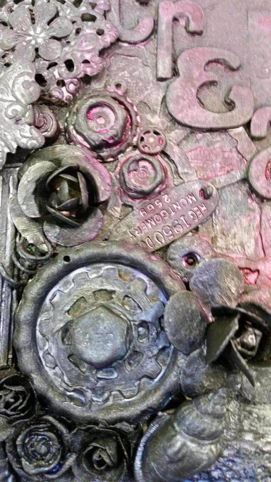 I haven't arted much in the last little bit, but I was able to take an amazing class at Clipper Street Scrapbooking, with Deanna. Her teaching for the class called "Black magic 2" was based on what she learned through Prima and Finnabair (also two of my fave sources of inspiration). It was such an amazing class and totally took away my fear of using black!!